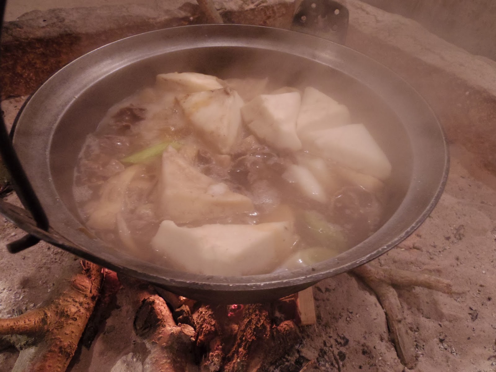 まず1品目は旅猿と同じ、芋煮。火を大きくするまでが大変でした。