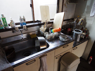 キッチンはこんなかんじ。調理器具も、食器やお箸も、ひととおり、そしてそれなりの数が揃っています。